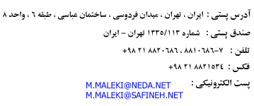 Bldg.,Ferdousi Sq., Tehran-Iran No.13355/113 Tehran-Iran +98 21 8820686 , 8810686-7 +98 21 8821534 M.MALEKI@NEDA.NET M.MALEKI@SAFINEH.NET